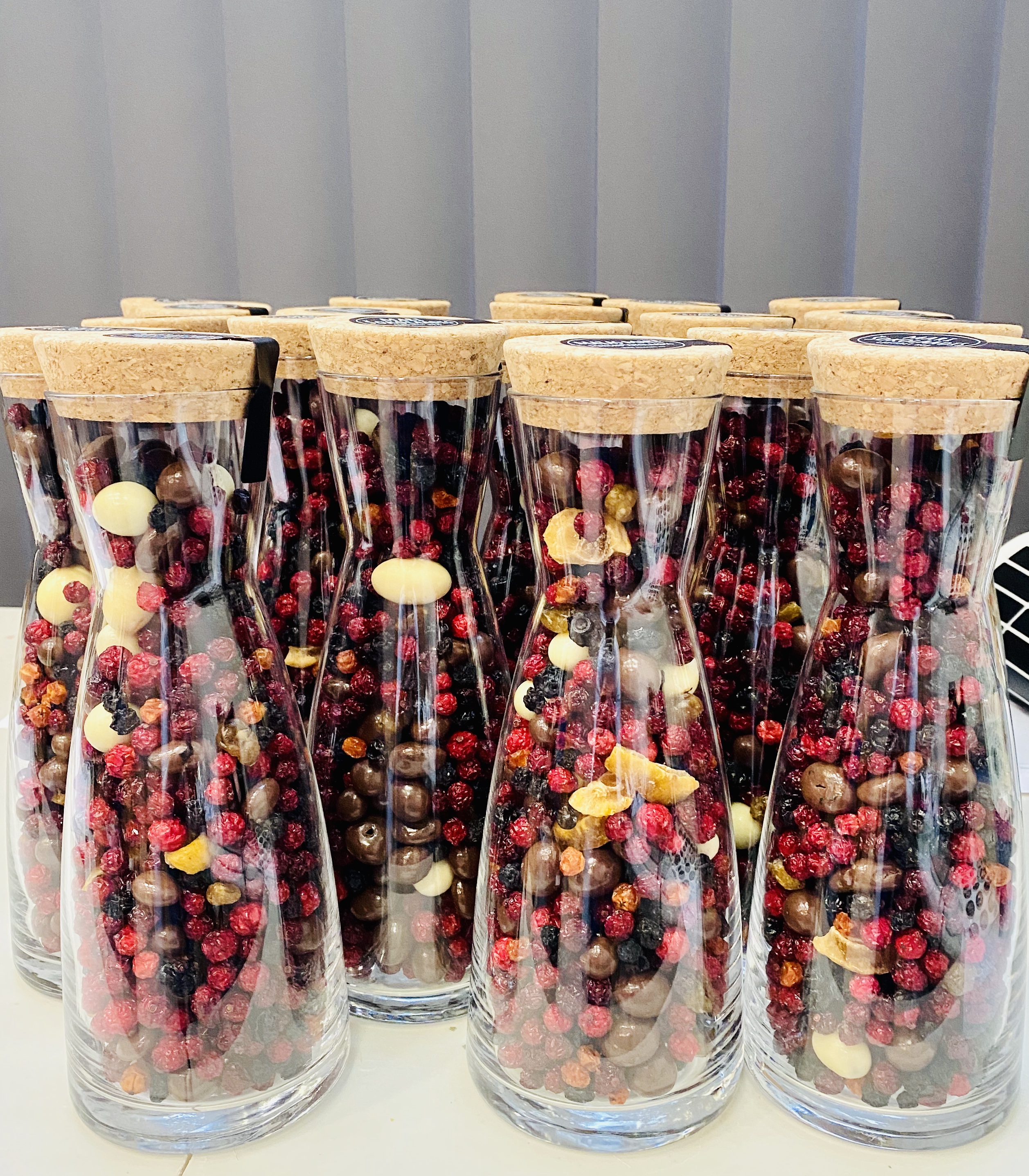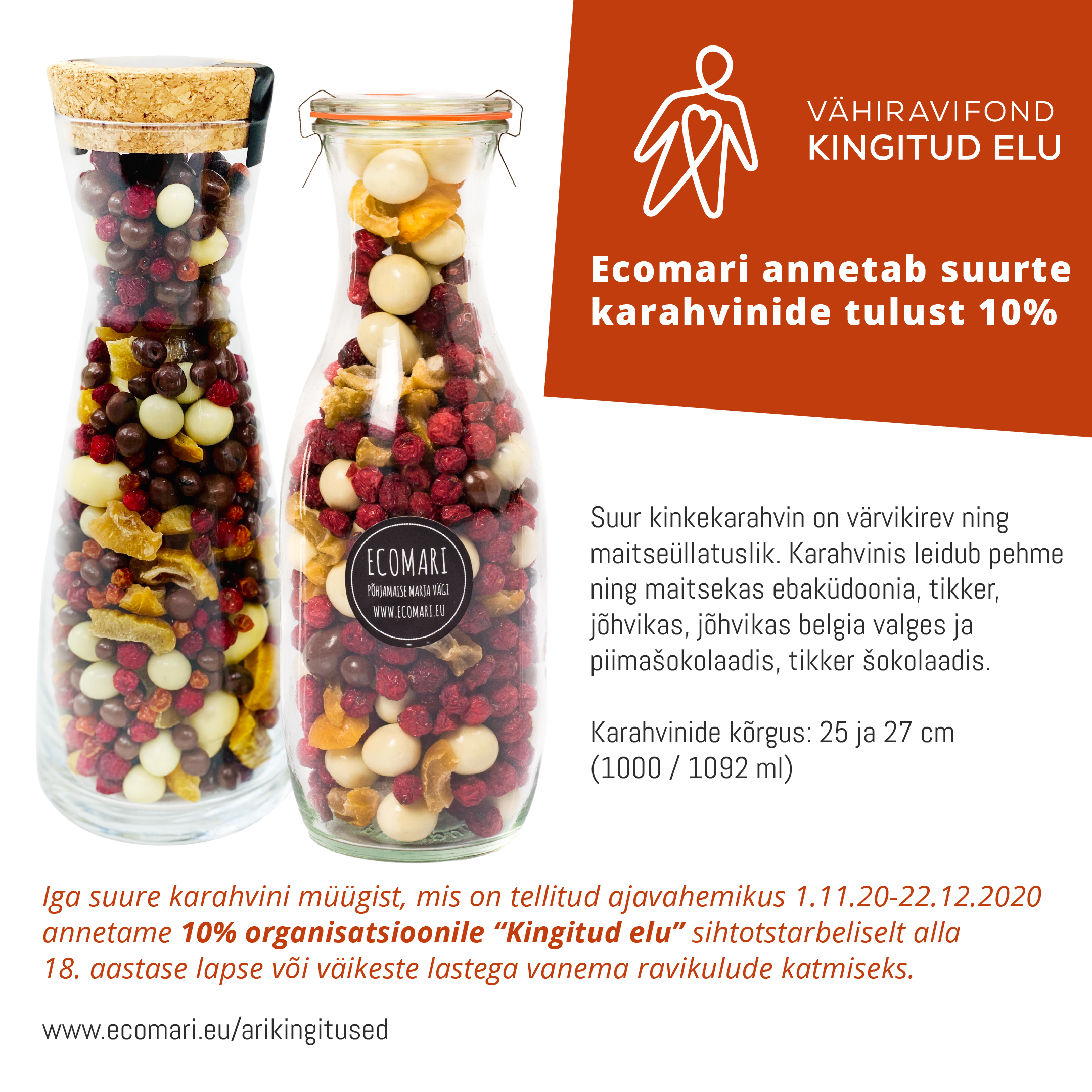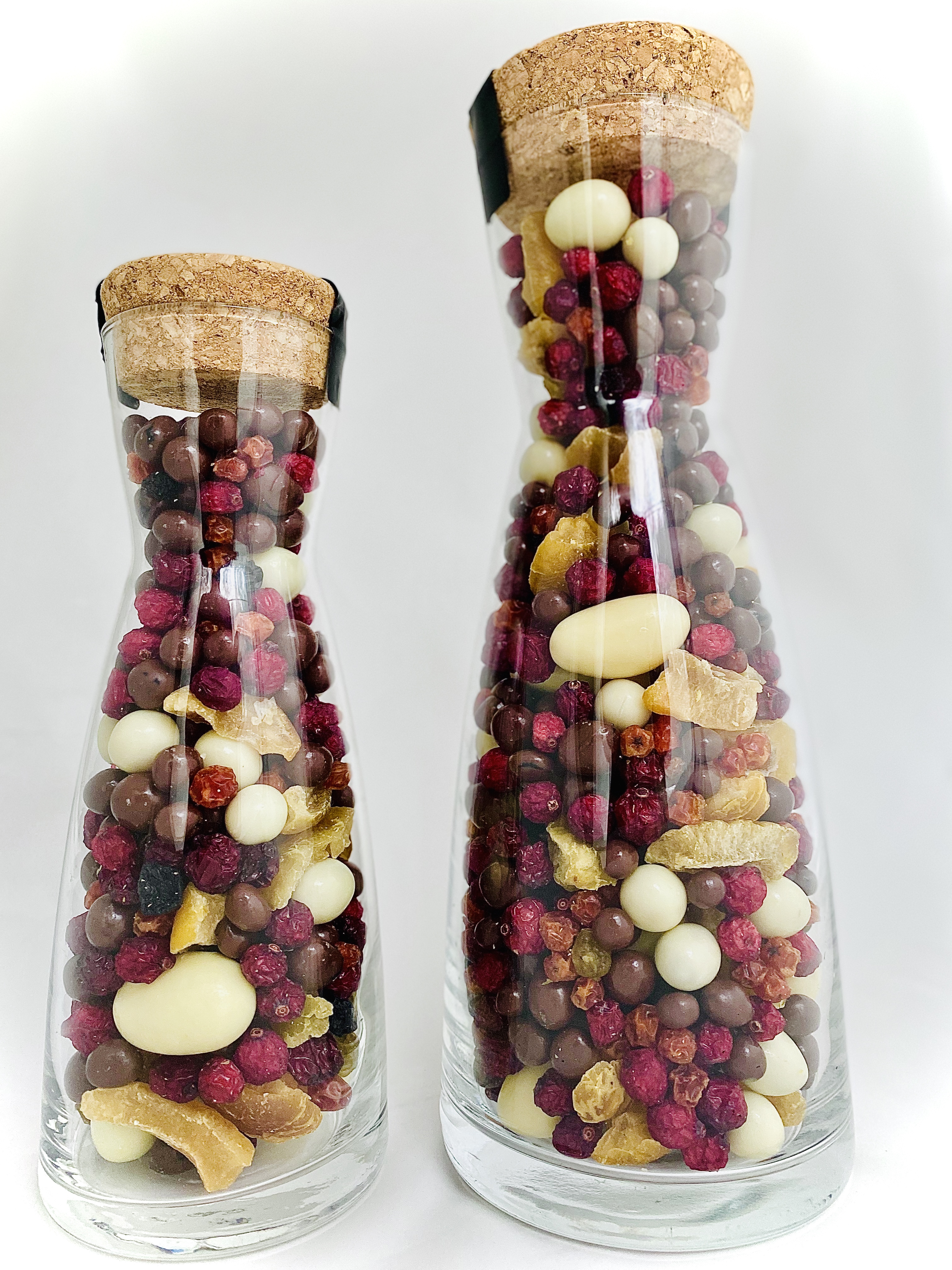 Stiilne ja pidulik karahvin on täiuslik kingitus. Sisu pakub elamusi kõigile meeltele, loob positiivseid maitse emotsioone, on tõeline jäämurdja. Korgist kaanega karahvin on taaskasutatav ja praktiline kingitus. Karahvinis leidub pehme ning maitsekas ebaküdoonia, tikker, pihlakas, jõhvikas, jõhvikas belgia valges ja piimašokolaadis, tikker, mustsõstar ja rabarber šokolaadis, ebaküdoonia valges šokolaadis. Kõrgus: 27 cm Maht: 1000 ml Kaal: ca 450 g