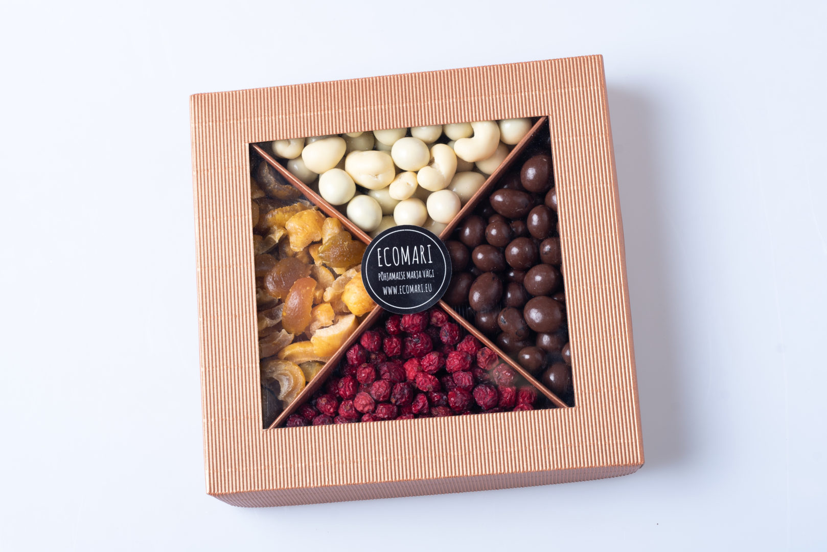 See tõeliselt suur (20×20 cm), netokaaluga 860 gr kinkekarp on elamuslik kingitus igale suuremale kollektiivile, sisaldab erinevaid maitseid neljas sektsioonis – pehme maitsekas ebaküdoonia, ebaküdoonia valges belgia šokolaadis, jõhvikas ning jõhvikas, kõrvits ning mustsõstar belgia piimašokolaadis.